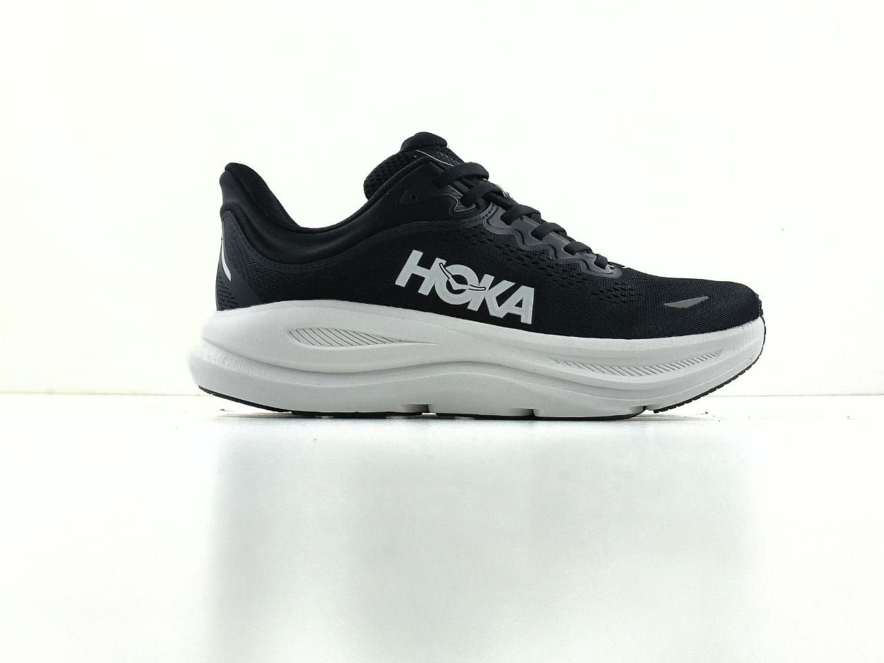 “Hoka Bondi 9 – ultra‑cushioned daily/max‑support road shoe with super‑critical foam midsole, 5 mm drop, Smooth MetaRocker™, 3D‑molded collar & structured knit upper for soft, stable rides.”