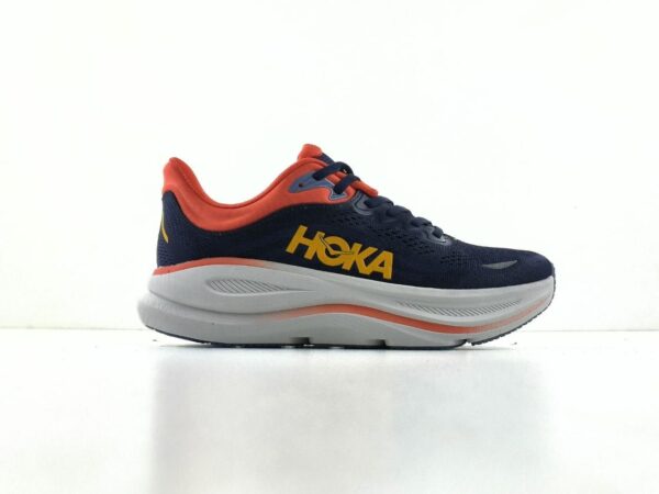 “Hoka Bondi 9 – ultra‑cushioned daily/max‑support road shoe with super‑critical foam midsole, 5 mm drop, Smooth MetaRocker™, 3D‑molded collar & structured knit upper for soft, stable rides.”