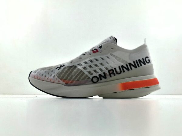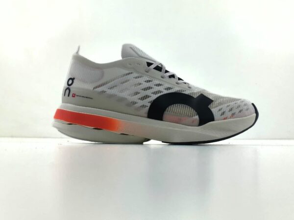 On Cloudboom Strike – ultra‑light, carbon‑plated race shoe with drop‑in Helion™ HF Bounceboard for max energy return; semitransparent breathable mesh upper, 4 mm drop, optimized for full‑distance competition.”